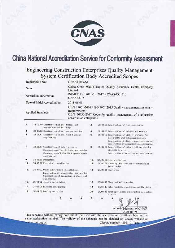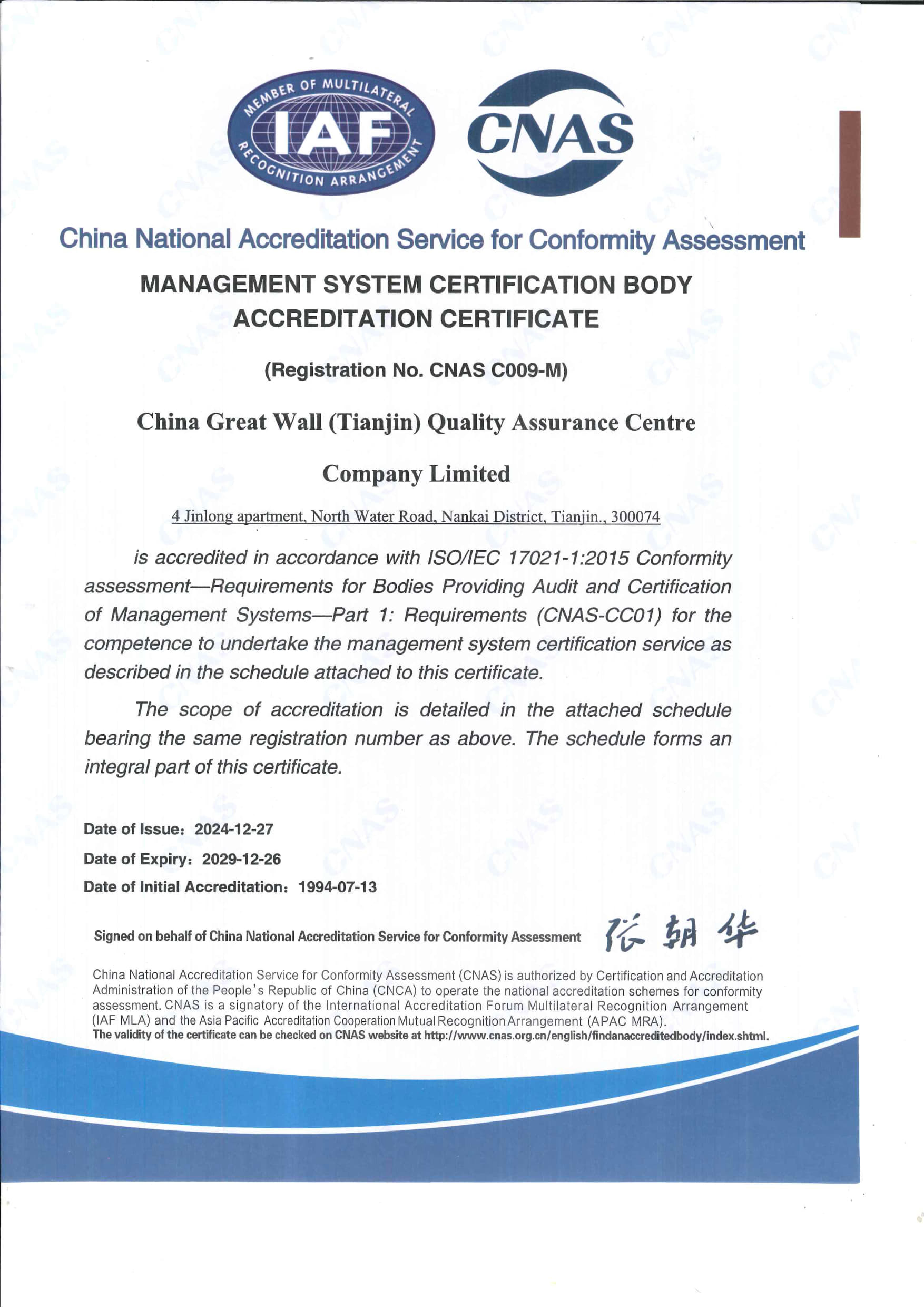 • 長城中心管理體系認證機構認可證書 英文