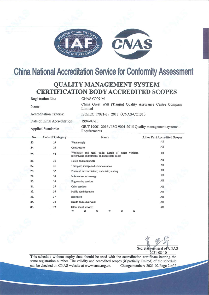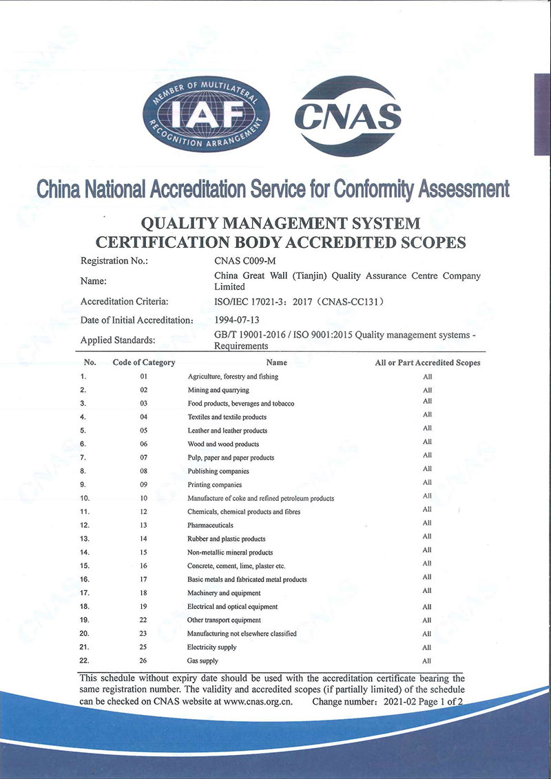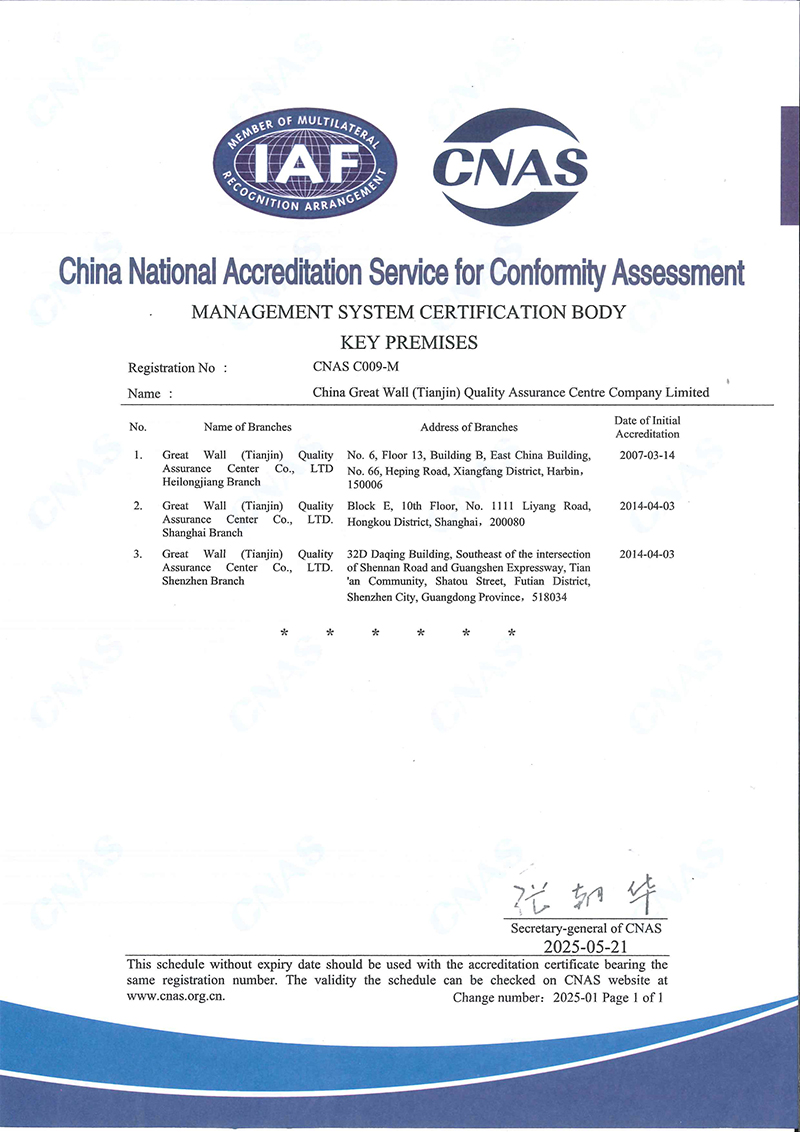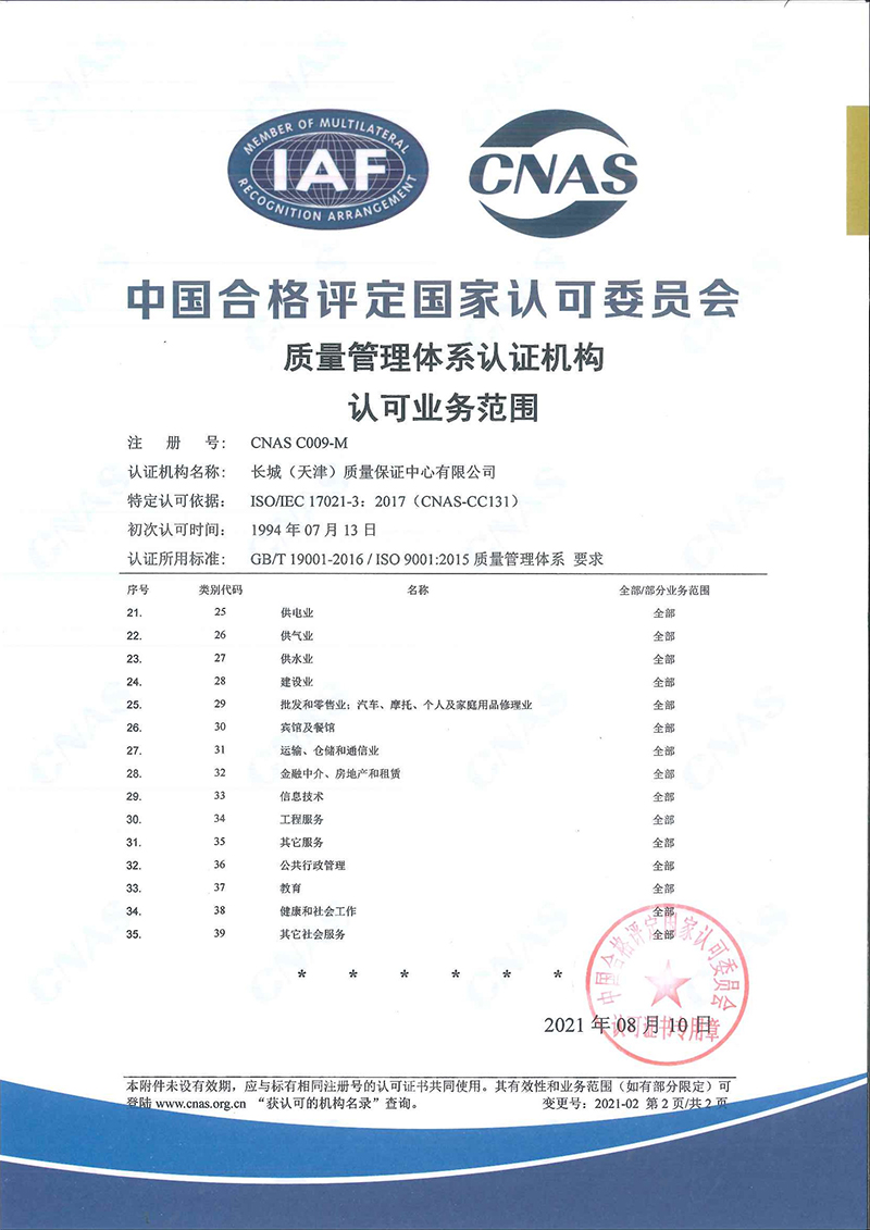 長城(天津)質量保證中心有限公司(簡稱“長城中心”),出資人為天津國興資本運營有限公司,是國有法人獨資企業。長城中心是經國家認證認可監督管理委員會批準認證資格、經中國合格評定國家認可委員會批準CNAS認可資格的具有獨立法人資格的第三方認證機構,是中國認證認可協會的常務理事單位。 長城中心1993年首批獲得國家認可并批準注冊,具備國際認證認可論壇IAF國際互認資格,現已發展為遍涉全國認證業務的大型綜合性認證機構之一。 長城中心具有質量管理體系、環境管理體系、職業健康安全管理體系、食品安全管理體系、危害分析 [查看詳情]