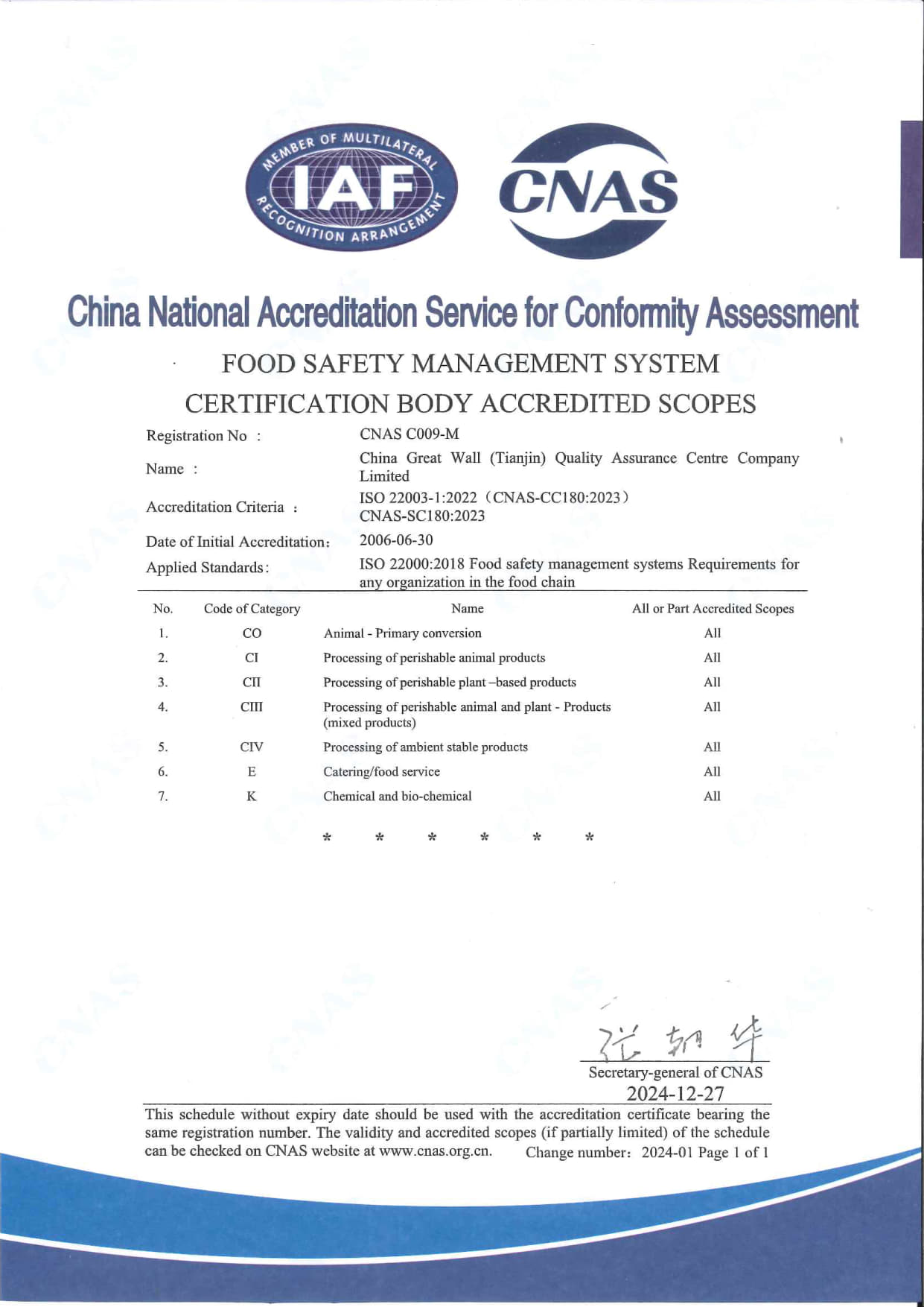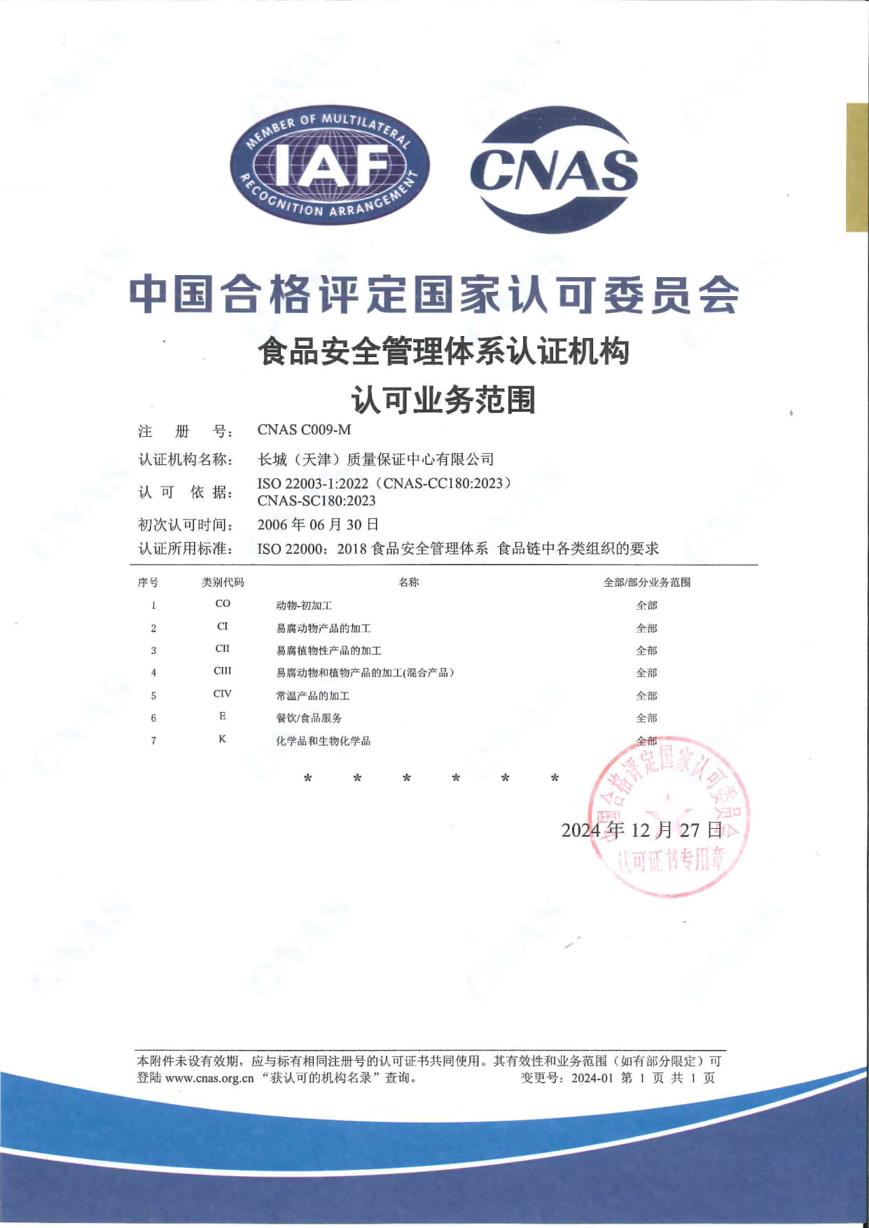 • 關于CNAS-CC180:2023《食品安全管理體系認證機構要求》等系列認可規范轉換的補充通知