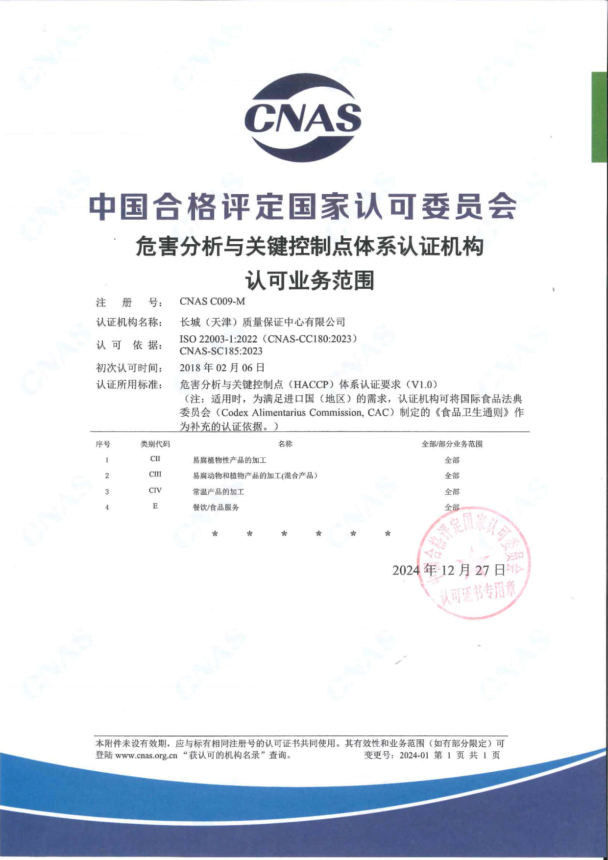 • 危害分析與關鍵控制點體系認可范圍 中文