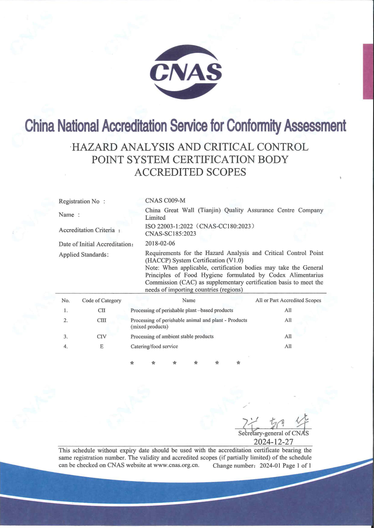 • 危害分析與關鍵控制點體系認可范圍 英文